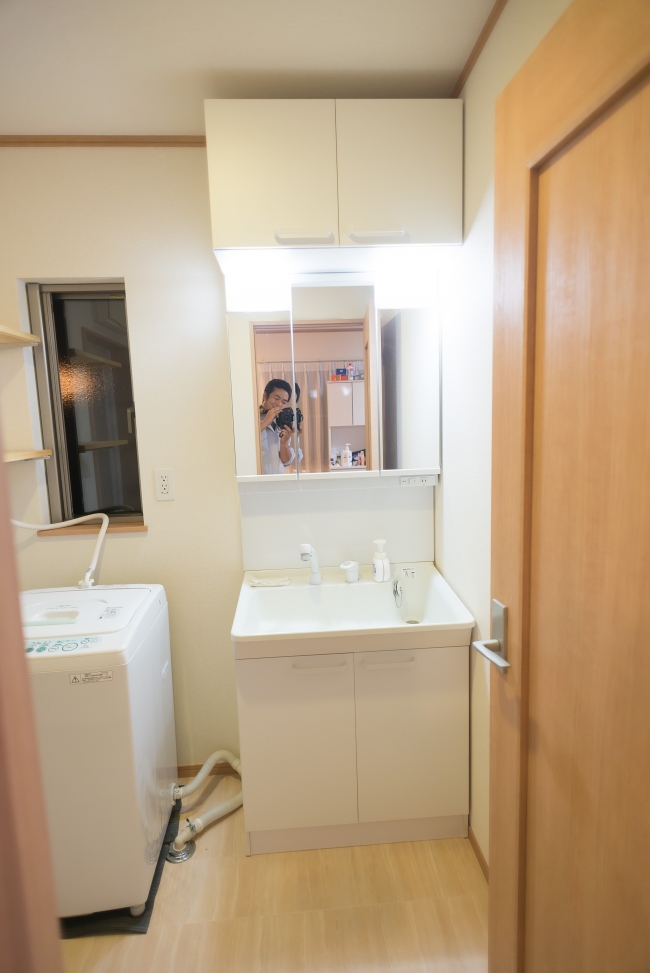 | リフォーム内容 | 洗面化粧台の下台はそのままで 3面鏡へ交換と吊戸を設置 |