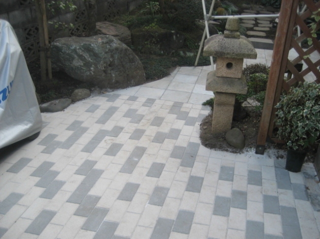 | リフォーム内容 | 玄関アプローチの石・植木撤去、インターロッキング敷き |