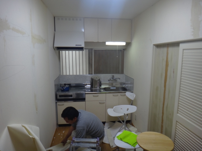| リフォーム内容 | 間取りを変更しながらミニキッチンスペースを据え付け 各所内装 各所コンセント及びスイッチ、照明器具の移動、新設 各種水道、電気、設備工事 リビングフローリング貼り 床下収納庫設置 その他 室内 枠扉塗装 |