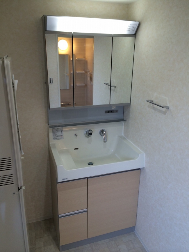 | リフォーム内容 | 洗面化粧台交換 クリナップ 給湯器交換(FF式) 洗面所内装一式 |