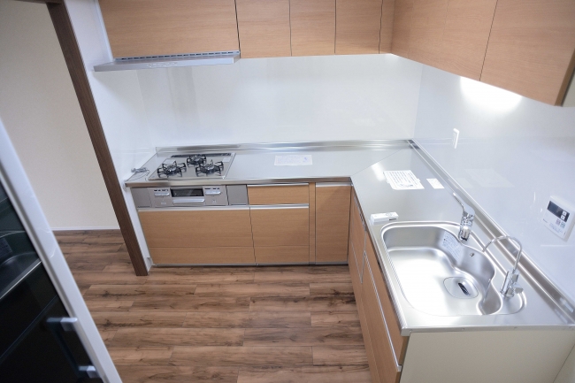 | リフォーム内容 | フルリフォームの中の一部 L型システムキッチン交換 Lixil製シエラ 2,300x1,950 食洗器 浄水器付 床遮音フローリング貼り 天井、壁クロス 照明器具、コンセント等交換 |